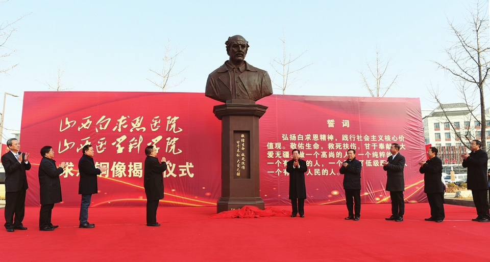 1月3日上午,白求恩銅像揭幕活動在山西白求恩醫(yī)院舉行。省委書記樓陽生出席活動并主持召開推進(jìn)區(qū)域醫(yī)療中心建設(shè)座談會。他強(qiáng)調(diào),要認(rèn)真學(xué)習(xí)貫徹習(xí)近平總書記關(guān)于實施健康中國戰(zhàn)略的重要論述,堅持以人民為中心的發(fā)展思想,按照省委“四為四高兩同步”總體思路和要求,提高政治站位,抓住難得機(jī)遇,深化改革創(chuàng)新,加快推進(jìn)區(qū)域醫(yī)療中心建設(shè),更好滿足人民群眾享有高品質(zhì)衛(wèi)生健康服務(wù)的需求。省領(lǐng)導(dǎo)廉毅敏、張復(fù)明、李思進(jìn)參加有關(guān)活動。吳偉主持揭幕活動。