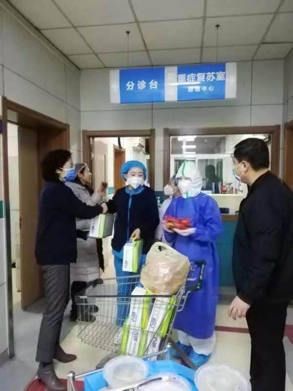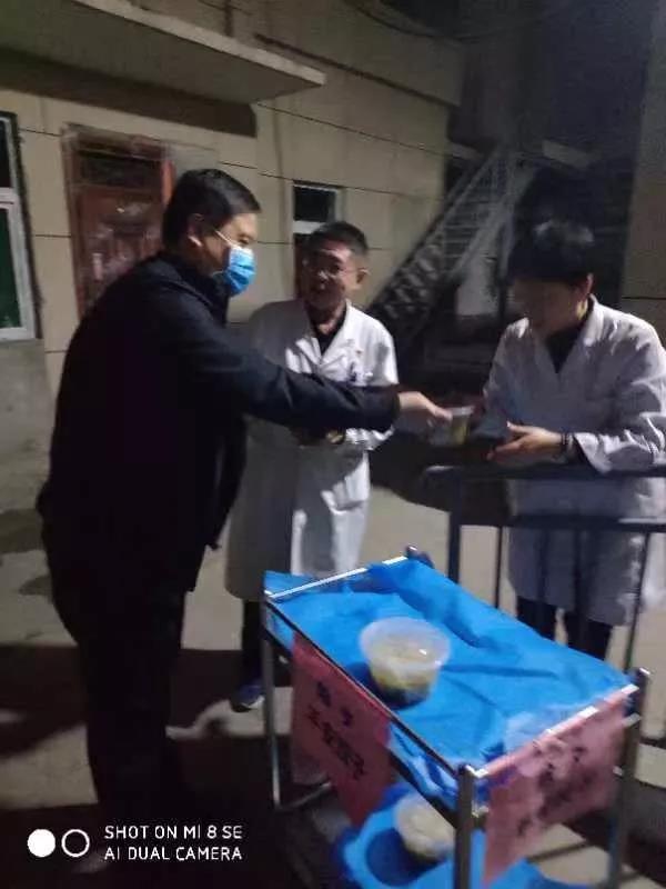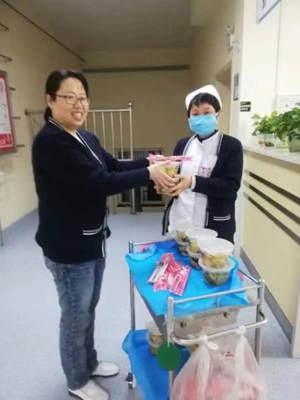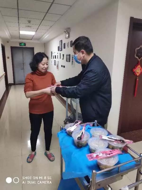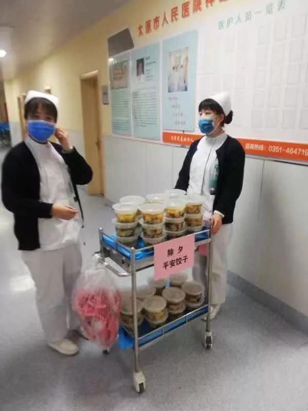 1月24日,除夕夜,在紀委書記趙敏的帶領下,工會、護士長們代表醫(yī)院和工會給一線發(fā)熱門診的醫(yī)護人員送去鹵蛋和牛奶,同時,將“除夕平安餃子”送到患者床頭,送到在崗職工手里。