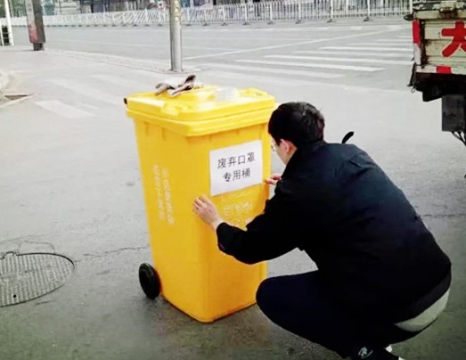 都有一個標(biāo)有“廢棄口罩收集桶”字樣的