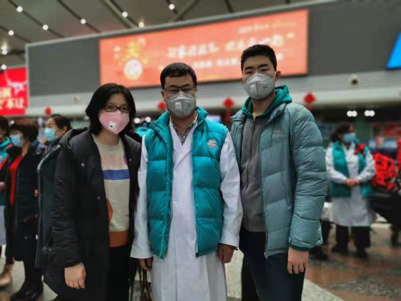中午1點(diǎn),劉毅匆匆趕回家中,家人們已經(jīng)準(zhǔn)備好豐盛的飯菜等著為他壯行。兒子已經(jīng)17歲,高高的個(gè)子,妻子打趣的問兒子:“爸爸要去疫區(qū)了,有什么感想啊?”兒子篤定的說:“我相信爸爸的決定。”到了機(jī)場(chǎng),一家三口拍了張合影,這時(shí)他們才知道,下一站:湖北仙桃。