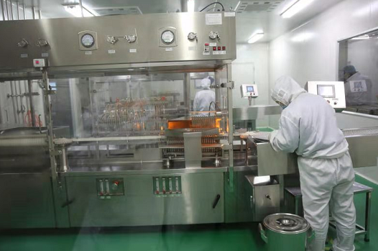 在公司的生產(chǎn)車間,工人們正忙得熱火朝天。小容量注射劑車間的灌封后室里,工人們穿著防護服,仔細整理著剛生產(chǎn)出來的利巴韋林注射液。