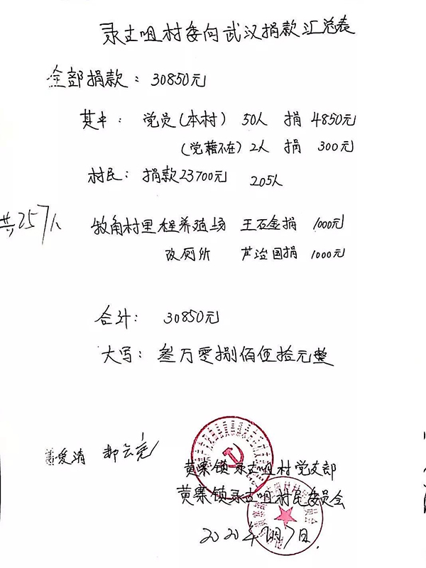 為了支持武漢抗擊疫情,錄古咀村兩委干部決定號(hào)召黨員、村民為武漢捐款。通過村內(nèi)廣播、微信群等方式進(jìn)行宣傳,為武漢疫區(qū)捐款獻(xiàn)愛心的消息很快在全村傳開。村里80歲的貧困戶、低保戶白萬梅聽到村里廣播后,第一時(shí)間主動(dòng)將100元錢交到村支部,帶動(dòng)了廣大黨員干部群眾踴躍捐款,男女老少解囊奉獻(xiàn)愛心,捐款最多的超過千元。