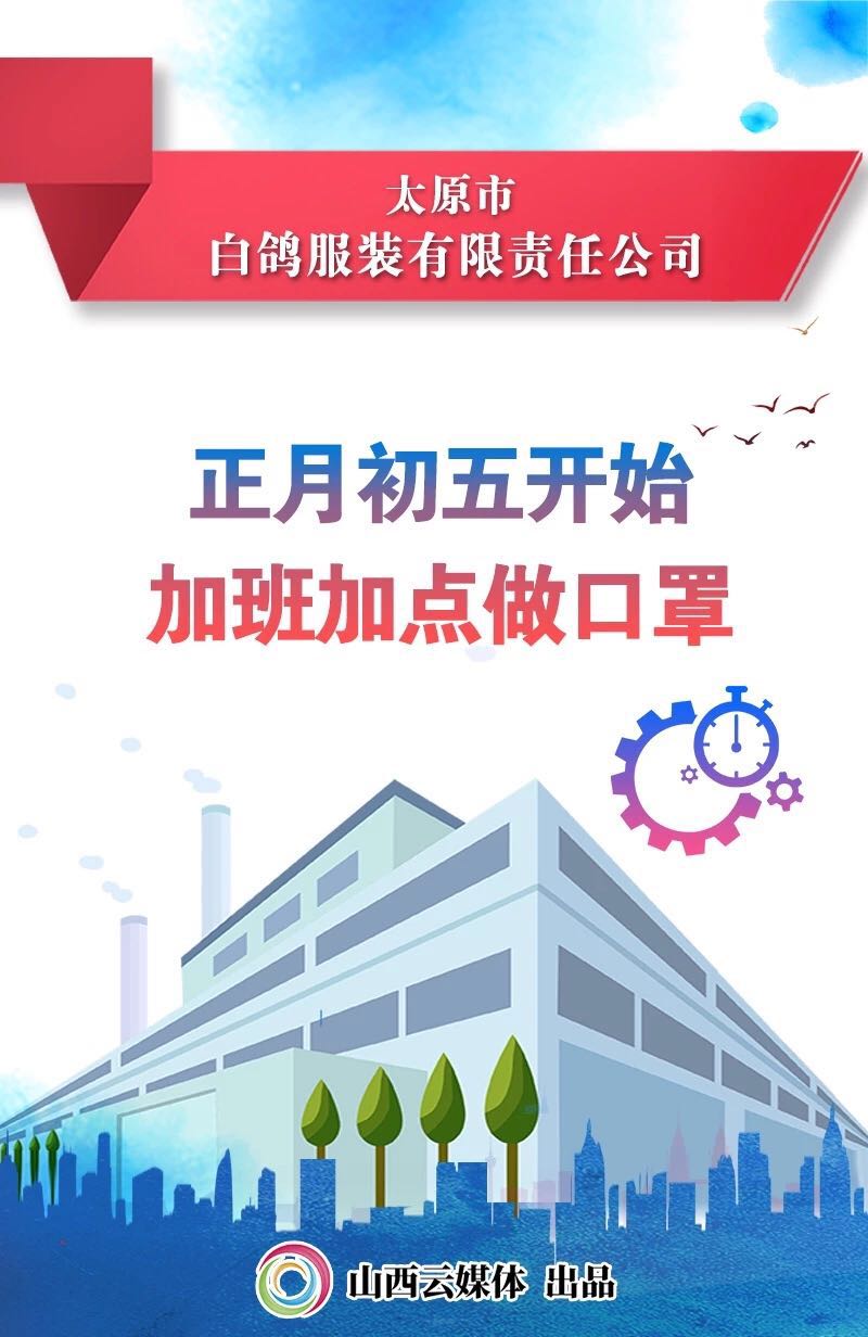 太原白鴿服裝有限責(zé)任公司從正月初五開始,臨時召回員工,加班加點生產(chǎn)防護口罩。公司試產(chǎn)了100只防護口罩,經(jīng)檢驗后全部合格,隨后全面投入生產(chǎn)。