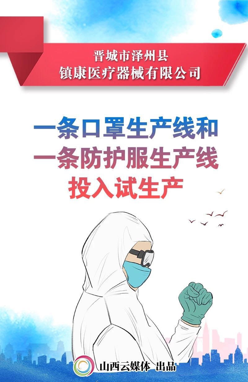 澤州縣組織鎮(zhèn)康公司籌集資金、購買設(shè)備,恢復(fù)生產(chǎn)。目前已采購回近一噸的防護服原材料和10臺生產(chǎn)設(shè)備,一條口罩生產(chǎn)線和一條防護服生產(chǎn)線投入試生產(chǎn)。