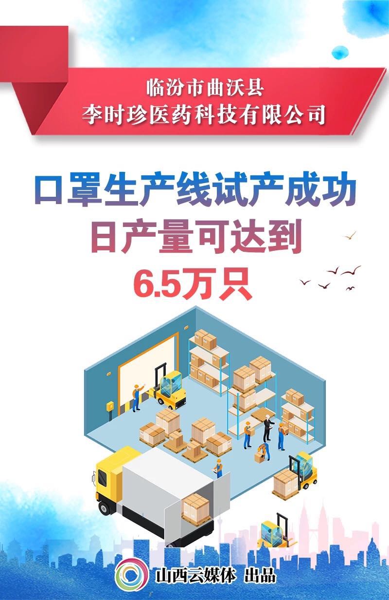 曲沃縣李時珍醫(yī)藥科技有限公司投資350萬元,從廣東、山東等地訂購了5條醫(yī)用外科口罩和醫(yī)用防護口罩(N95)生產(chǎn)線和一批原材料。2月5日,兩條口罩生產(chǎn)線已調(diào)試完成,投產(chǎn)達效后,日產(chǎn)量可達到6.5萬只。