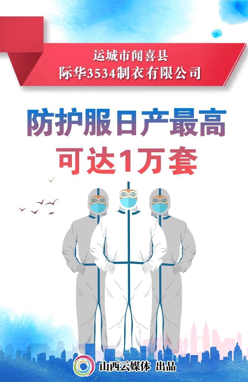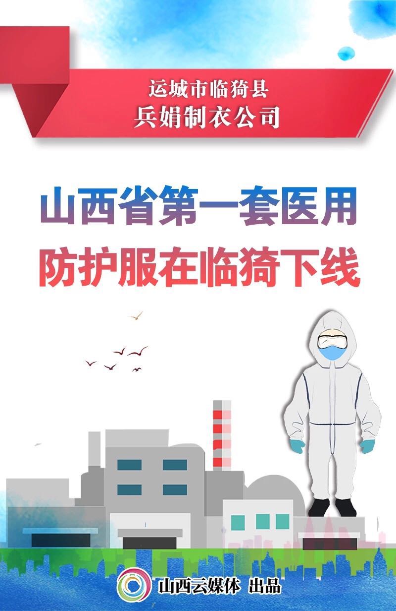 臨猗縣在兵娟制衣公司復(fù)產(chǎn)醫(yī)用防護服生產(chǎn)線,2月3日,全省第一套醫(yī)用防護服在該公司正式下線。現(xiàn)生產(chǎn)線已開足馬力、加緊生產(chǎn),盡最大努力完成生產(chǎn)任務(wù),保障醫(yī)護人員安全。