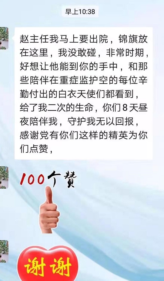“感謝晝夜陪伴我的白衣天使,感謝黨有你們這樣的精英,為你們點贊。”2月9日下午,山西省首例危重新冠肺炎患者從太原市第四人民醫(yī)院治愈出院。2月10日,院方回訪,患者表示一切無恙,感謝之情溢于言表。
