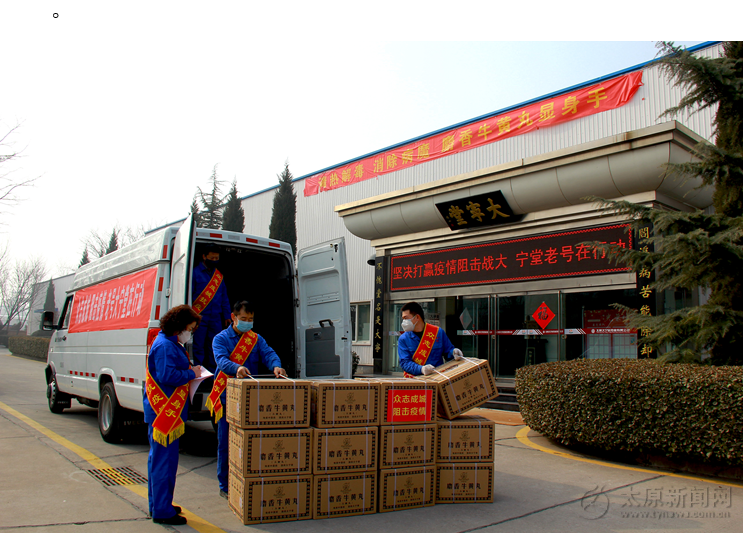 2020年1月31日,大年初五,得知麝香牛黃丸同蘇合香丸、安宮牛黃丸一起被列入山西省衛健委《山西省新型冠狀病毒感染的肺炎中醫藥防治方案(試行)》防治推薦用藥。政府的肯定,專家的認可,老號大寧堂非常興奮,迅速加快了全國“戰疫情捐獻活動”的進度。