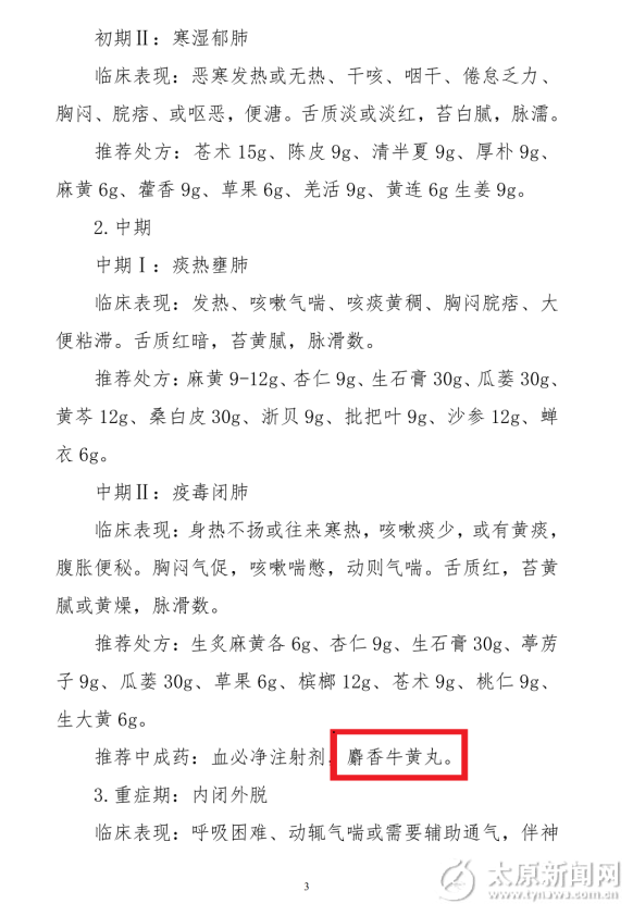 小安宮“麝香牛黃丸”列入山西省衛健委《山西省新型冠狀病毒感染的肺炎中醫藥防治方案(試行)》防治推薦用藥,用于患者中期、重期治療使用。