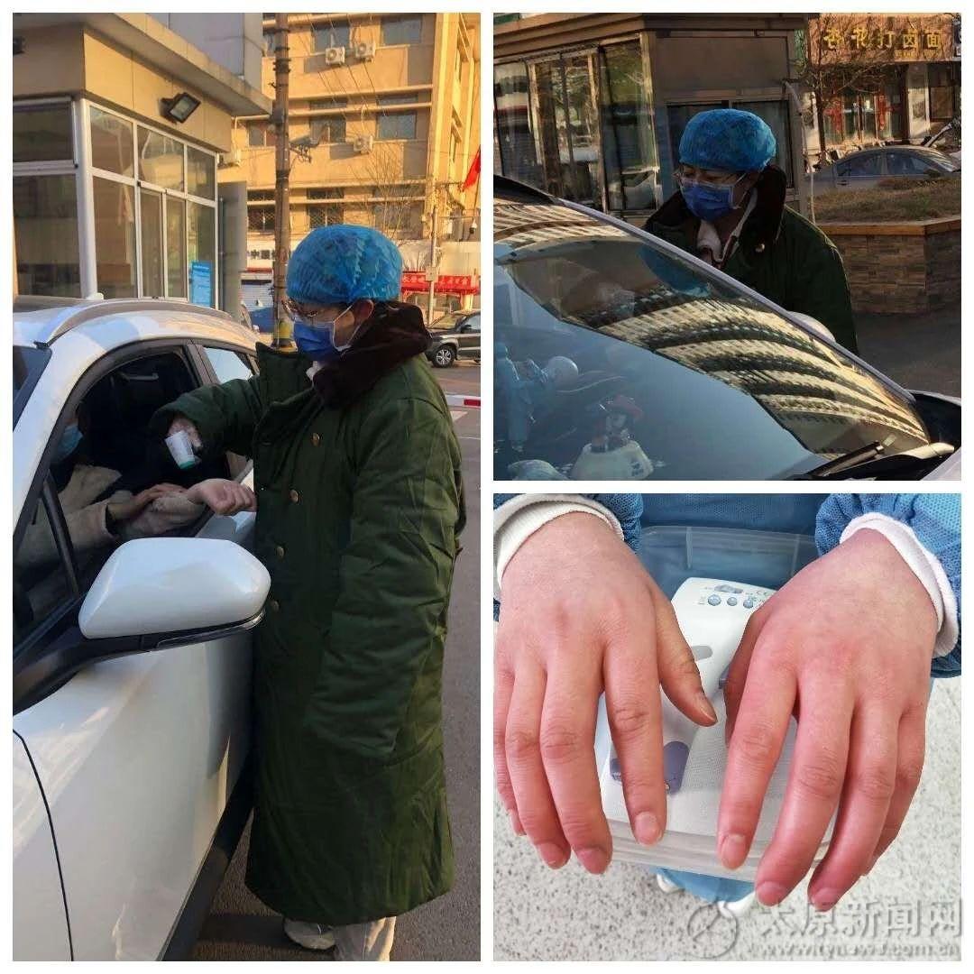 疫情防控關口雙向把關。為避免漏檢發熱病人,除固定的預檢分診點外,醫院還安排專人在院內車輛進出口進行預檢分診。在瑟瑟冷風中,一工作便是7個小時,往往一個班次下來,他們臉上被勒出深深的印記,雙手也被凍得通紅,可是沒有一句怨言。