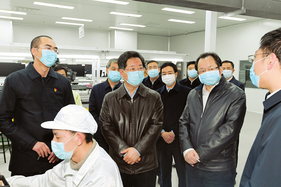 三月五日,省委書記樓陽生來到某智能制造基地生產(chǎn)車間,了解科技研發(fā)、產(chǎn)品應(yīng)用、員工培訓(xùn)等情況。李聯(lián)軍攝