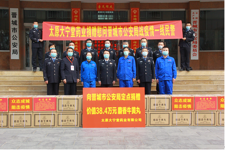 疫情爆發以來,晉城市公安局緊急行動,廣大民警頂著嚴寒,設卡防控,冒著被感染風險,不畏艱險,晝夜工作,為晉城市的一方平安,為打贏疫情阻擊戰,做出了突出的貢獻。公安民警的辛勞付出,大寧堂藥人十分感動,捐獻鎮堂之寶慰問干警,以表心情。
