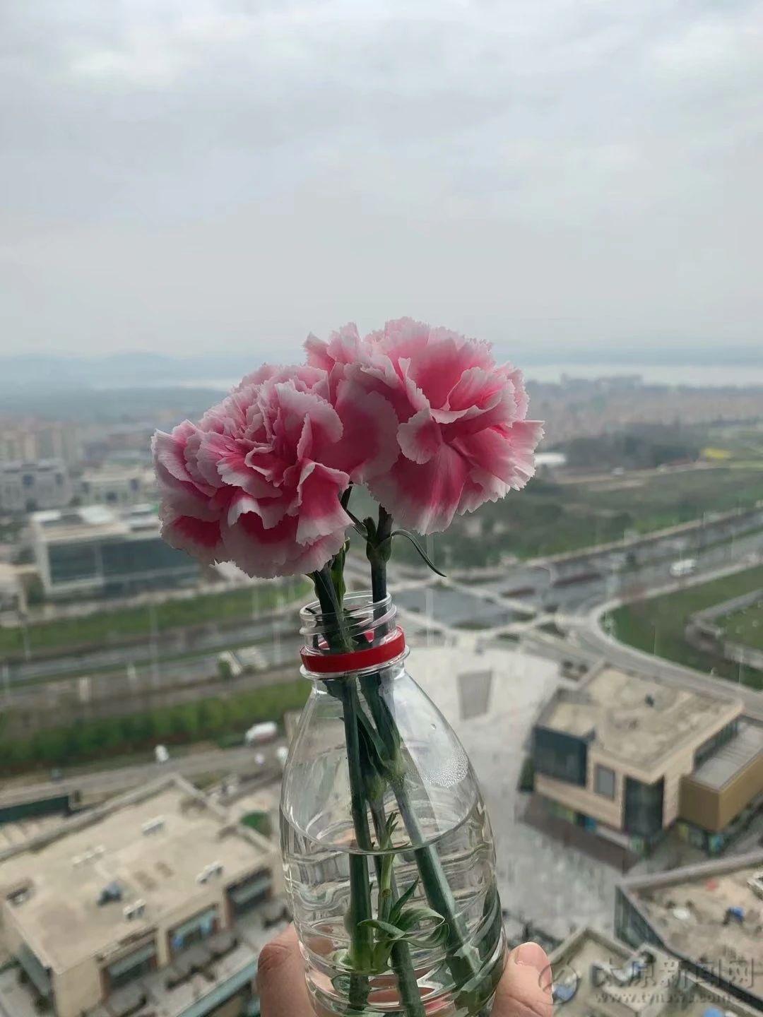 三八節(jié)收到的花放在礦泉水瓶子里竟然可以長得這么好。