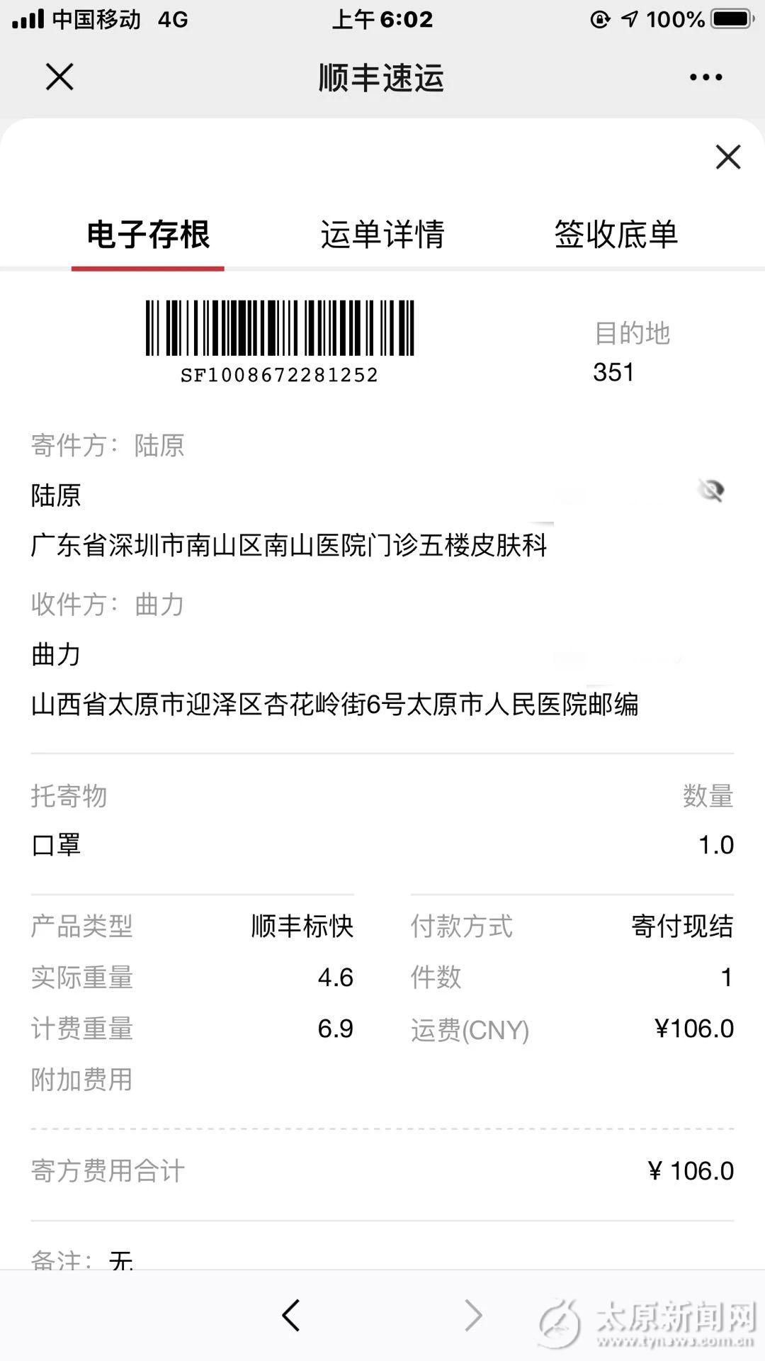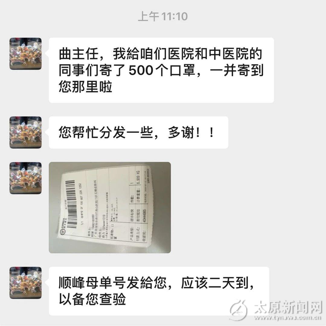 3月14日上午,太原市人民醫院皮膚科主任曲力收到一份來自深圳市南山醫院的快遞,500只醫用口罩。這是人民醫院皮膚科特聘專家陸原博士為醫院捐贈的防護物資。