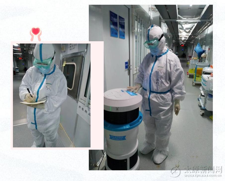 小伙伴們開始進病房了,由于艙內是負壓病房,剛進去有點不適應,感覺到胸悶,憋氣,頭暈……趕緊調整狀態,努力適應,和帶班老師一起認真交接班,巡視病房,清點物資,核對藥品,老師帶我們熟悉環境,告知注意事項,養成隨手關門的好習慣,定時做好消毒工作,還有垃圾的分類處理等。