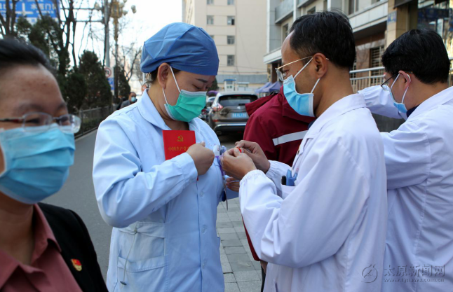 3月17日上午,杏花嶺區(qū)舉行在疫情防控第一線發(fā)展黨員入黨宣誓儀式。