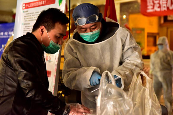 3月17日12時40分,壩陵橋社區衛生服務中心醫護人員提前為即將入住酒店的境外返(抵)并被隔離者備好相關物品,包括體溫計、口罩、宣傳冊、噴壺、抹布等。