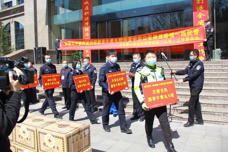晉中市紅十字會專職副會長孟慶華指出,感謝中華愛心基金會(山西)工作委員會和太原大寧堂藥業有限公司的慷慨捐獻,為他們心系晉中、支援晉中的善舉點贊。本次捐贈的“小安宮”麝香牛黃丸,由有著630余年歷史的老字號“大寧堂”生產,具有祛火和預防病毒感染的作用,被稱為“中藥抗生素病毒靈”。新冠疫情發生以來,公安民警投身疫情防控最前沿,不畏辛勞,在關鍵崗位勇承重載,用行動和汗水向全市人民交上了一份合格答卷,為晉中取得疫情防控的階段性勝利作出積極貢獻,得到社會各界的廣泛認可。捐獻的麝香牛黃丸分發至防控一線民警,增強抵抗病毒的能力,保駕護航一線民警繼續防控疫情。