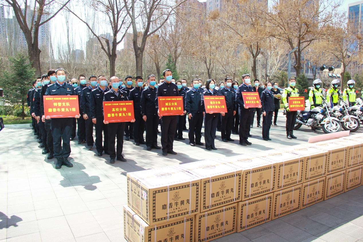 太原大寧堂藥業有限公司副總裁范永強代表董事長表示:晉中公安是一支英勇善戰、敢于擔當、值得信賴的優秀團隊。疫情發生以來,全體民警頂著嚴寒,不畏艱險,晝夜奮戰在疫情防控最前線,為保一方平安,打贏疫情阻擊戰做出了特別重要的貢獻。晉中公安民警的辛勞付出,感動著大寧堂人。今天我們專程來慰問民警,捐獻“小安宮”麝香牛黃丸,以表敬意。