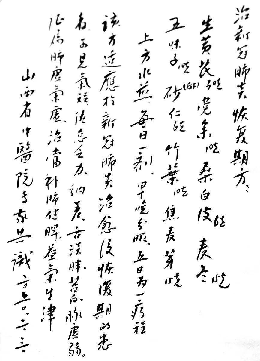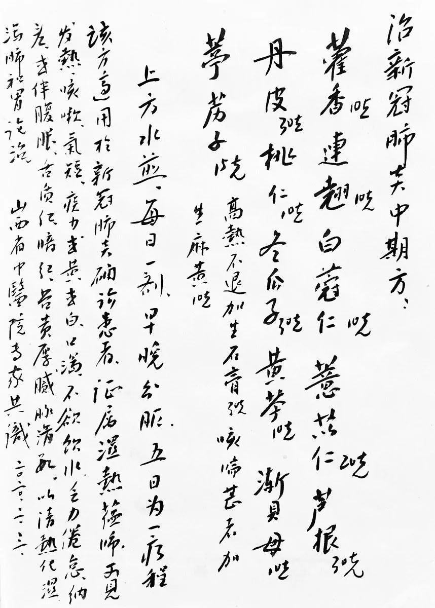 用毛筆謄錄的新冠肺炎藥方。