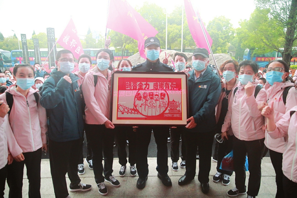 來時無畏,戰時英勇。3月26日早,我省第四批支援湖北醫療隊300名隊員離開駐地返晉,戰“疫”47天,隊員們與武漢這座城市產生了深厚的感情。離開時,當地群眾前來熱情相送,表達心中感激之情。