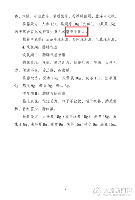 《山西省新型冠狀病毒感染的肺炎中醫藥防治方案(試行)》摘錄: