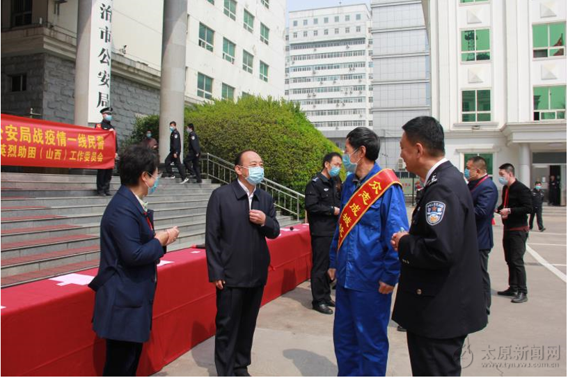中華愛心基金會英烈助困(山西)工作委員會創始人周培斌對太原大寧堂藥業表示衷心地感謝,對長期支持公安工作的紅會領導表示崇高的敬意。他指出,在市委市政府、公安廳黨委的堅強領導下,長治市公安機關克服困難,堅守崗位,與醫護人員、社區工作人員及志愿者共同守護這座美麗城市的安寧和人民群眾的安康。在這場沒有硝煙的戰斗中,充分體現了公安民警不怕犧牲、敢于戰斗的奉獻精神,體現了公安民警舍小家、為群眾的忘我精神,體現了公安民警連續作戰、不怕疲勞的戰斗精神,全體公安民警在各自的崗位上做出了突出的貢獻。他希望,在市局黨委的領導下,全體民警、輔警要繼續發揚連續作戰、堅守崗位、盡職盡責的精神,同社會各界頑強戰斗在抗疫一線,用新的成績和貢獻回報社會,向人民群眾交一份滿意的答卷。