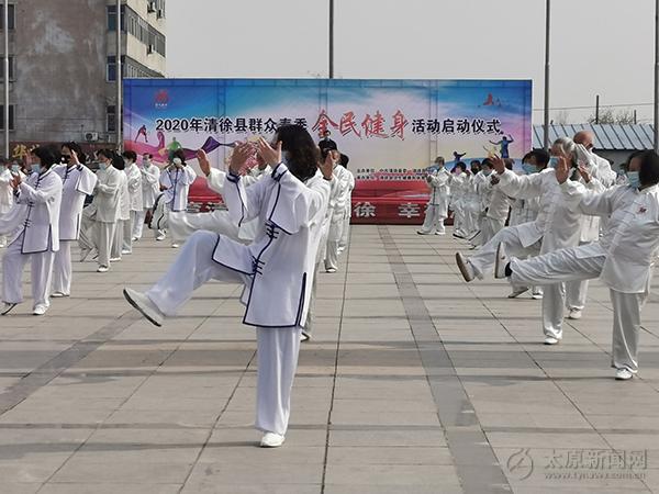 4月6日上午,2020年清徐縣春季群眾全民健身活動太極拳展演在東湖廣場舉行。活動由中共清徐縣委、縣政府主辦,縣衛生健康和體育局承辦。