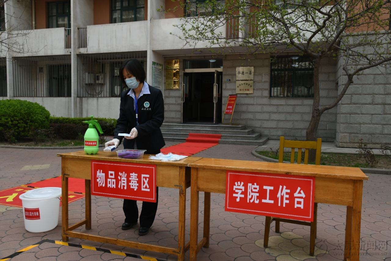在經濟與管理學院令德一齋,公寓服務人員王芝仙已做好了迎接學生返校準備,她介紹說:該宿舍第一批返校女生為7人,開學當日她將負責在宿舍門口對學生大小包裹、手機等用品進行消毒。