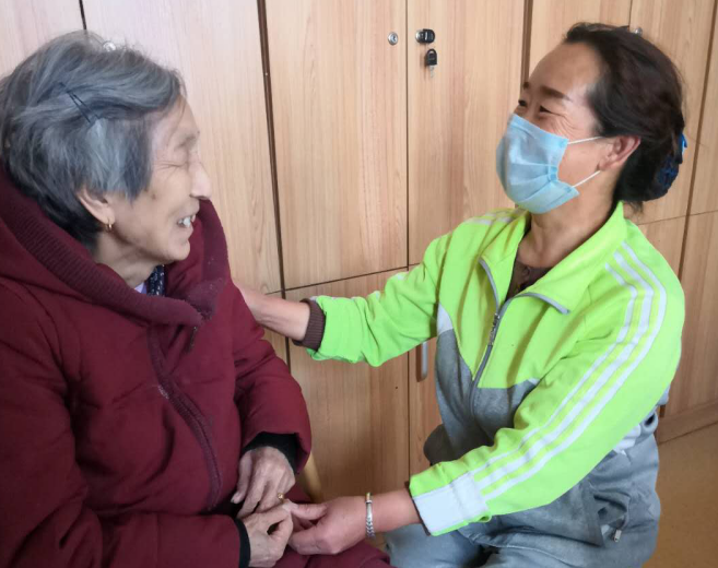 疫情封院之前,王英麗、田素文兩位老人的子女來的最勤,孩子們的笑聲經(jīng)常清脆的抖落在老人身邊。防控期間,許久無法見到家人的落差讓兩位老奶奶心中總有些悶悶不樂,干什么都提不起精神。為了盡快幫助兩位老奶奶排解憂愁,一有時間工作人員便輪流找她們聊天,為她們讀報紙、講笑話、看電視,轉(zhuǎn)移她們的注意力。時間久了,兩位老人漸漸習慣了封院的特殊生活,情緒逐漸好轉(zhuǎn)起來。