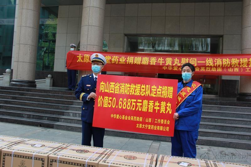 太原大寧堂藥業有限公司副總裁范永強代表董事長表示:疫情發生以來,我省全體消防指戰員服從命令,聽從指揮,保護地方經濟以及人民生命財產安全,維護社會穩定做出巨大貢獻。作為數百年的老字號中藥企業,我們特向奮戰在前線的廣大消防指戰員捐獻鎮堂之寶,非遺國粹“小安宮”麝香牛黃丸,以表敬意。