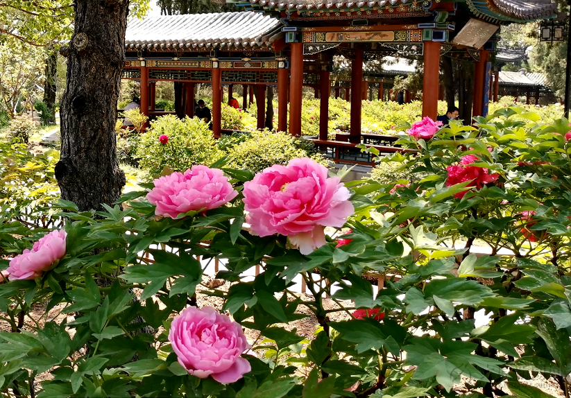 步入晉祠牡丹園,陣陣香氣襲人。各色牡丹花,紅的勝火、粉的似霞、黃的若金、白的如雪,令人目不暇接。牡丹花與園內廊、亭、坊、榭融為一體,在紅墻綠瓦間次第盛開,香艷了晉祠的春天。