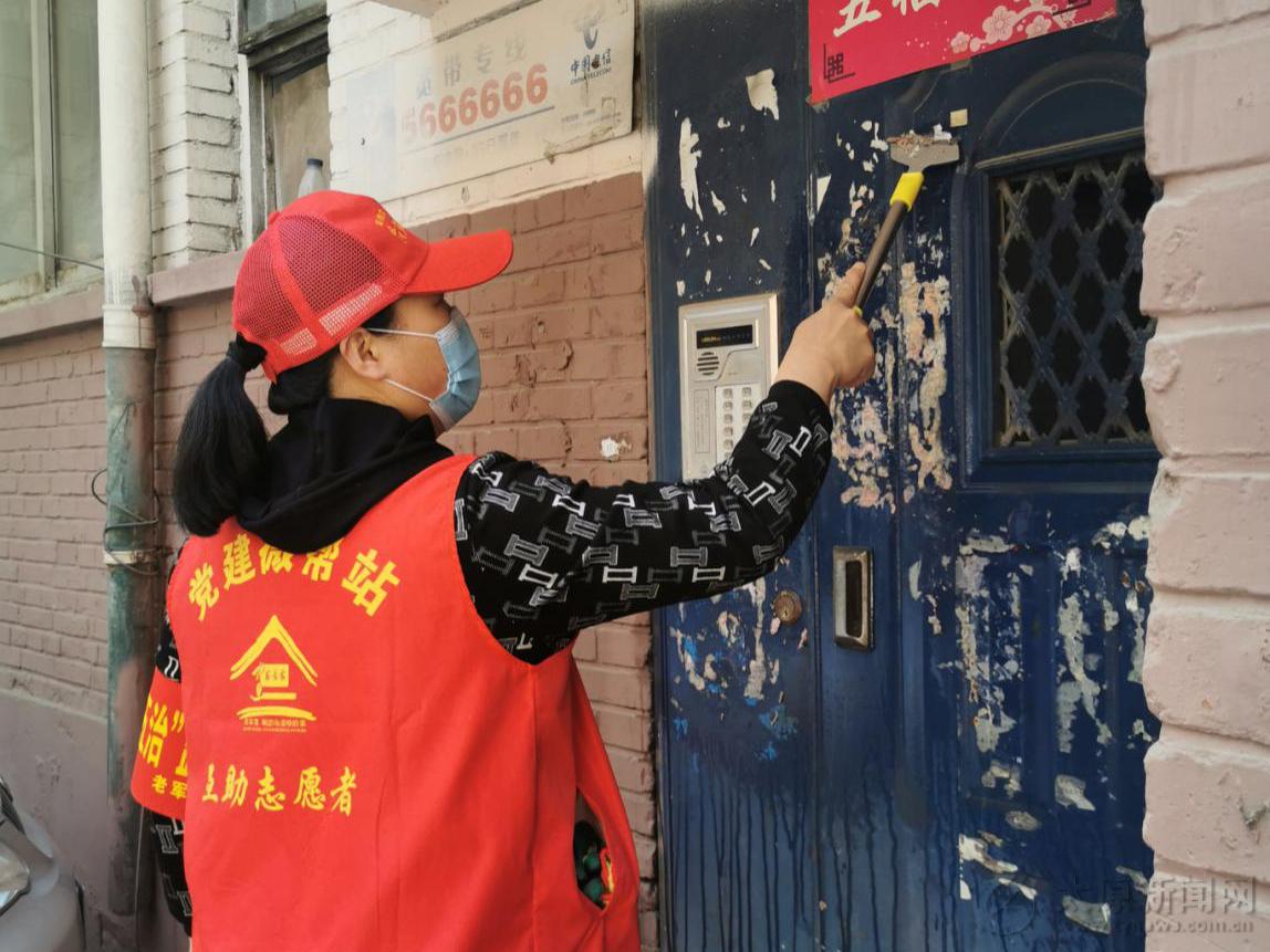 行動(dòng)中,志愿者們身穿紅色馬甲,分區(qū)域開展清理工作。他們有的揮動(dòng)小鏟,鏟除頑固的“牛皮癬”;有的拿起刷子,除去外立面的污跡;有的拿著抹布,把單元門擦得煥然一新;還有人拿著工具清掃,對(duì)街道地面、衛(wèi)生死角、綠化帶等處的垃圾雜物認(rèn)真清理,居民樓院及轄區(qū)道路的環(huán)境面貌煥然一新。