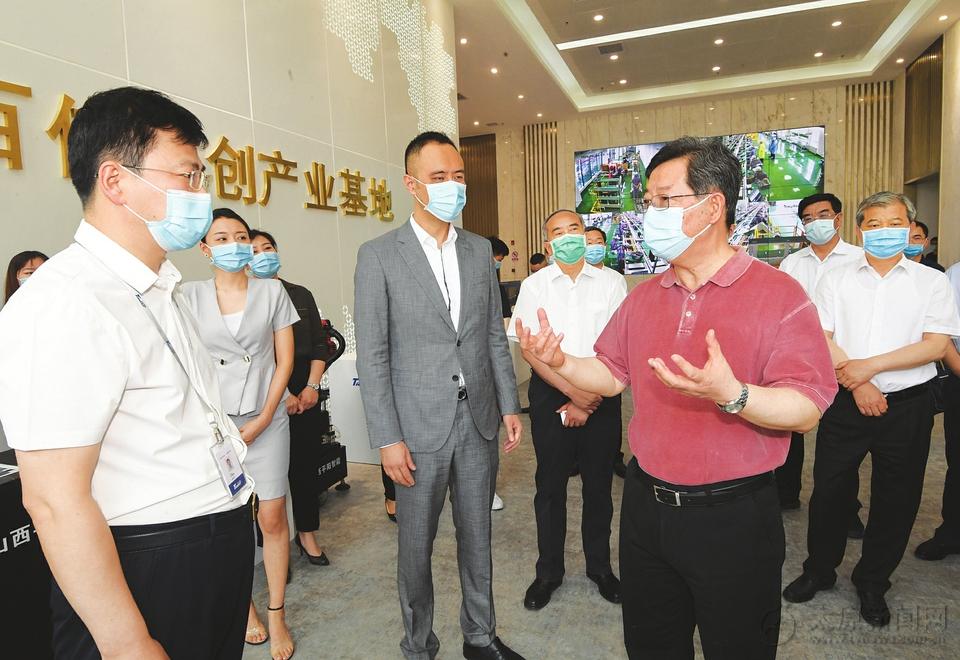 六月六日,在綜改示范區某新一代信息技術研發產業基地投產現場,省委書記樓陽生與項目及合作企業負責人深入交流。李聯軍攝