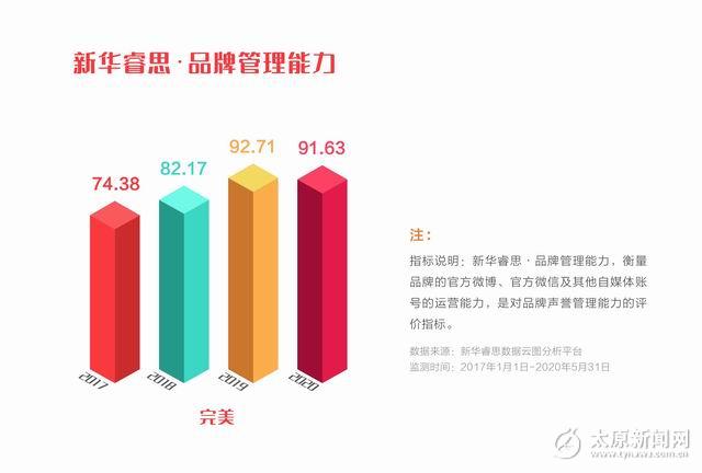 在品牌管理能力方面,新華睿思數據顯示,從2017年至今,完美公司品牌管理能力穩中有升,從2017年的74.38上升至2019年的92.71,特別是2019年提升幅度明顯,完美公司加強新聞網站及微信等新媒體平臺的應用效果彰顯。但是受到疫情影響,2020年消費市場的熱度下降,各社交平臺上對公司的討論熱度有所下降,包括完美公司在內的眾多企業的品牌管理能力均出現不同程度的降低。