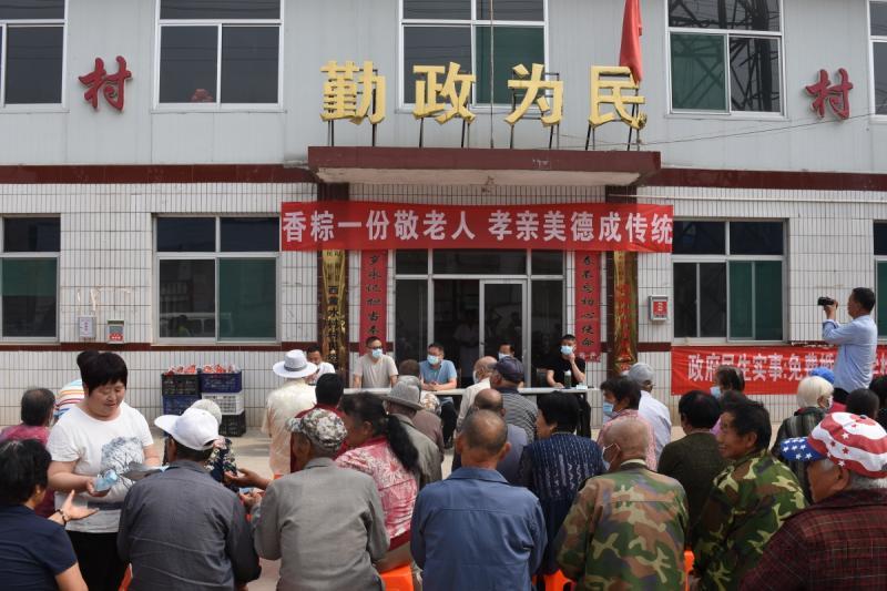 在端午節來臨之際,6月22日,陽曲縣西黃水村在村委大院舉行“香粽一份敬老人孝親美德成傳統”活動。