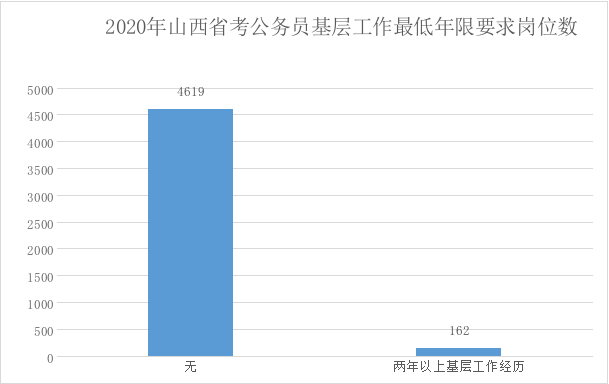 在2020年山西省省考招錄的職位中,對考生的基層工作最低年限要求基本上都無限制,對于廣大無工作經驗的考生來說是一個特別有利的地方。要求兩年基層工作經驗的崗位數占比為3.39%,所以各位考生在報考時要看清崗位的要求。