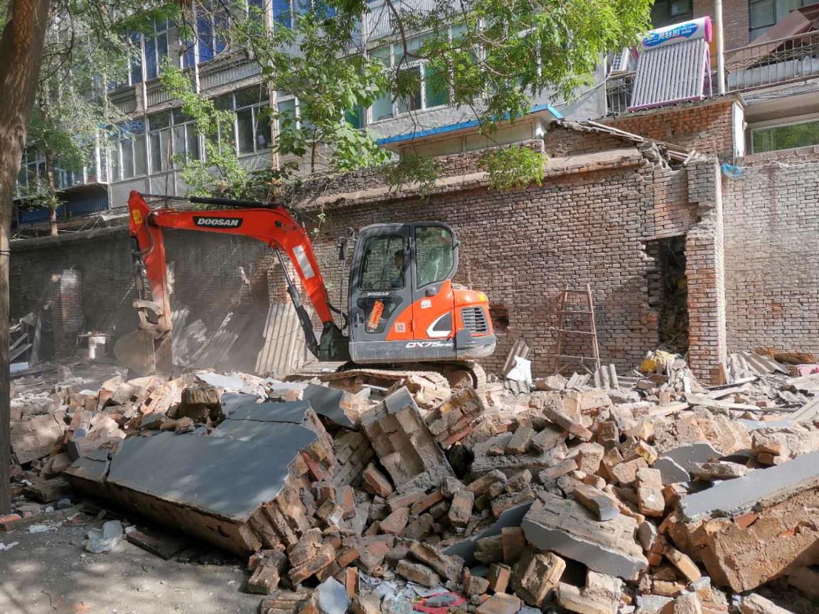 今年5月,醫(yī)藥小區(qū)被納入了橋東街道老舊小區(qū)改造項(xiàng)目范圍,正式登上了老舊小區(qū)改造的“專列”。 5月6日,隆隆的吊車開(kāi)進(jìn)了醫(yī)藥小區(qū),改造正式動(dòng)工。率先被拿下的是166號(hào)院內(nèi)幾處私蓋的車庫(kù),這幾處車庫(kù)是小區(qū)的陳年“釘子戶”,占據(jù)了大半院子,十分影響居民采光和出行。老舊小區(qū)改造指揮部率先在這里動(dòng)工,雷厲風(fēng)行地解決了問(wèn)題,順利打響了改造的“第一槍”。