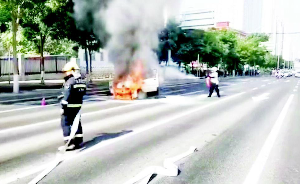 消防車很快呼嘯而至,消防人員接管滅火,幾分鐘后撲滅大火,但這輛車已經被徹底燒毀。