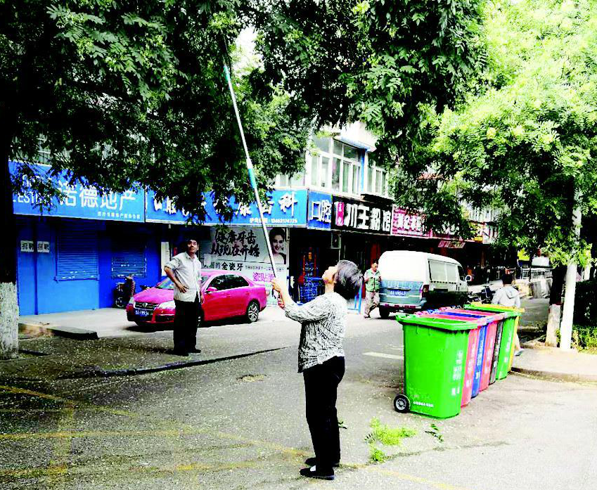 7月22日早晨7時許,五龍口街東華苑北門往南三四十米處路南,一名老人拿著自制的桿子,不停地將路邊槐樹上的樹枝鉤下,而樹下已經落著不少折斷的枝葉。原來,老人正在采槐花。為一己私欲,摘槐花傷槐樹,實在不文明。