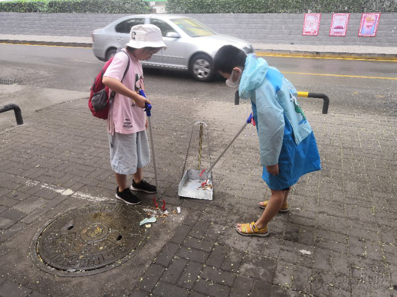 隊伍中的兩名小志愿者,也自發組成了臨時撿垃圾小分隊,“我是男生,我來拿簸箕”、“我是男生,我來搬走這塊擋在人行道上的石頭”、“我是男生,我來......”,小女生也不示弱,你能干的我一樣可以,兩個孩子精力比大人都旺,盡管天空還下著蒙蒙細雨。