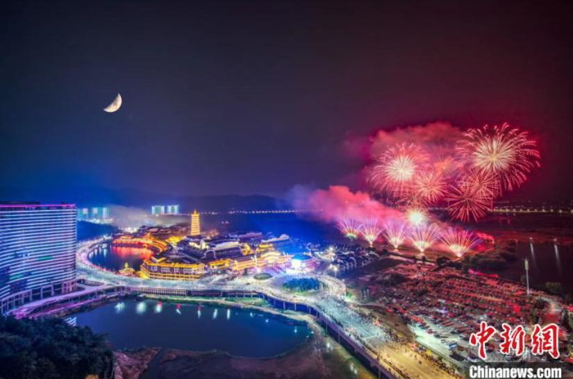 圖為浙江龍之夢樂園內的太湖古鎮水舞秀。浙江龍之夢樂園供圖