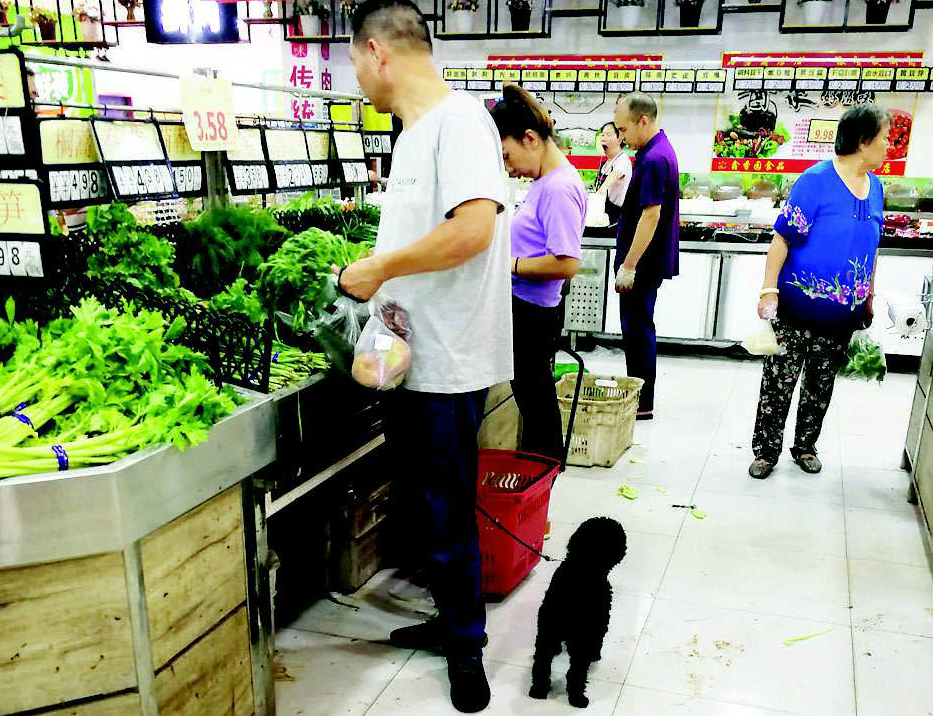 8月8日傍晚,一名男子牽著寵物狗進入許西社區一家超市購物。《太原市文明行為促進條例》第十七條規定,禁止攜帶犬只進入辦公樓、學校、醫院、名勝古跡園、動物園、候車(機)室、餐飲場所、商場、賓館等公共場所。
