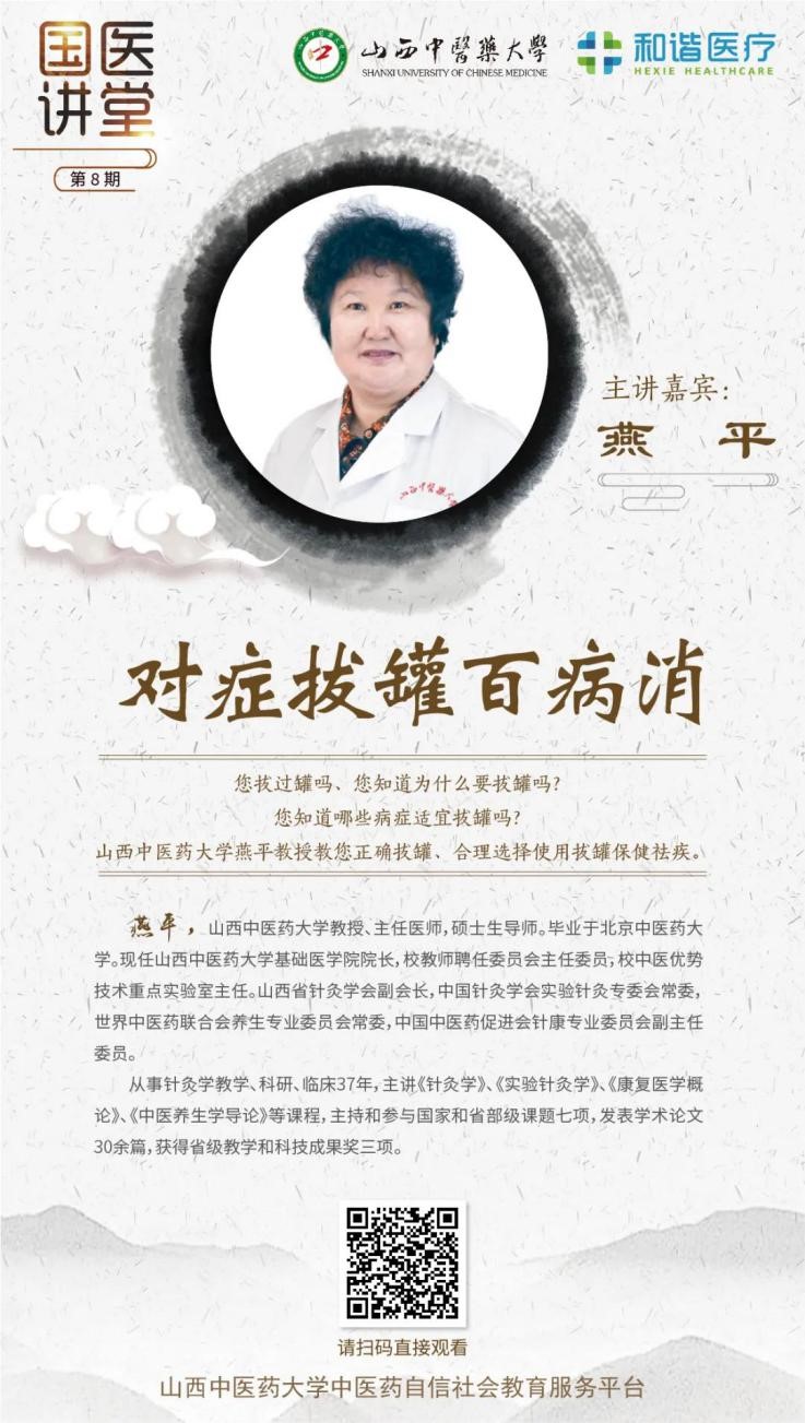 點(diǎn)擊下方圖片進(jìn)入“國(guó)醫(yī)講堂”,山西中醫(yī)藥大學(xué)燕平教授帶您了解拔罐療法那些事!