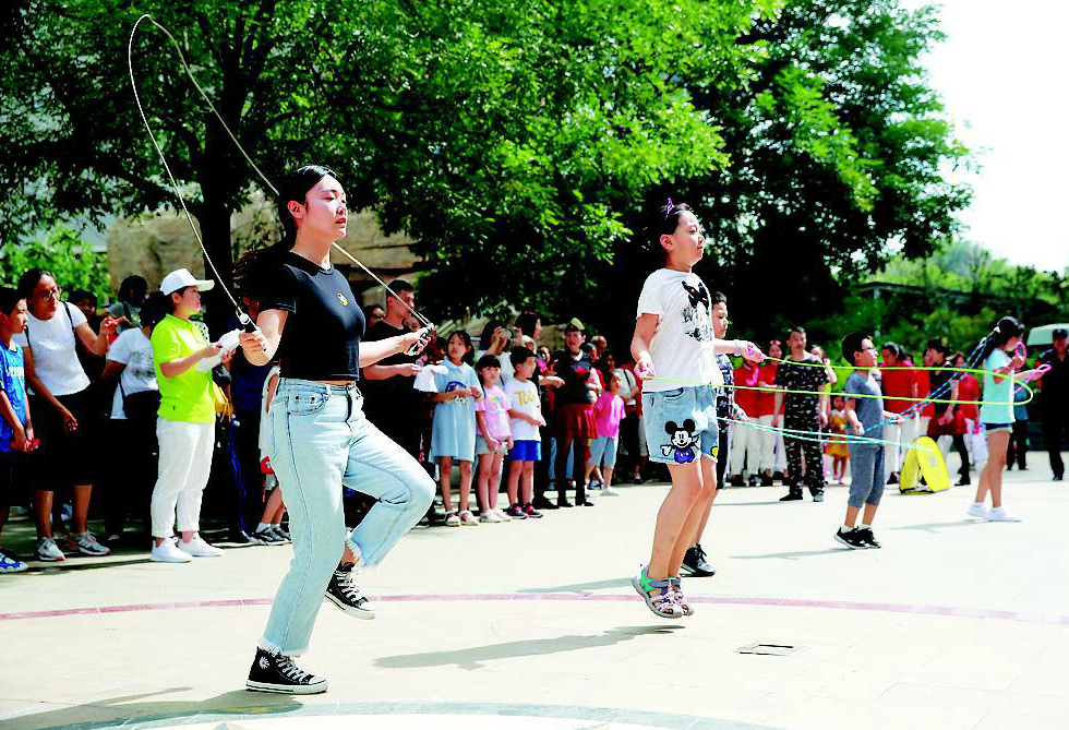 表演結(jié)束后,社區(qū)組織居民開(kāi)展了一場(chǎng)小型趣味運(yùn)動(dòng)會(huì),包含托球跑、滾鐵環(huán)、跳繩、趾壓板、擲沙包5個(gè)項(xiàng)目。