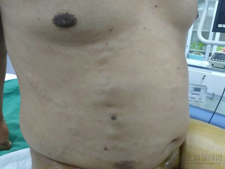 體格檢查:雙肺呼吸音清,未聞及干濕性啰音,心臟各瓣膜聽診區(qū)未聞干濕性啰音,腹軟,無壓痛及反跳痛,右腹壁靜脈可見曲張,無移動(dòng)性濁音腸嗚音正常,3次/min,肝脾肋下未及,雙下肢無水腫。
