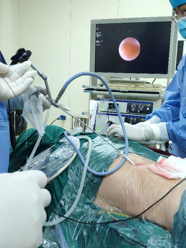 經皮腎鏡碎石取石術,就是在腰部建立一條從皮膚到腎臟的通道,通過這個通道把腎鏡插入腎臟,利用激光、超聲等碎石工具,把腎結石擊碎取出,就是所謂的“打孔取石”,英文簡寫為PCNL。經皮腎鏡取石術的開展,填補了汾東院區泌尿外科治療較大上尿路結石的空白,見證了汾東泌尿人復興泌尿的信心與決心。