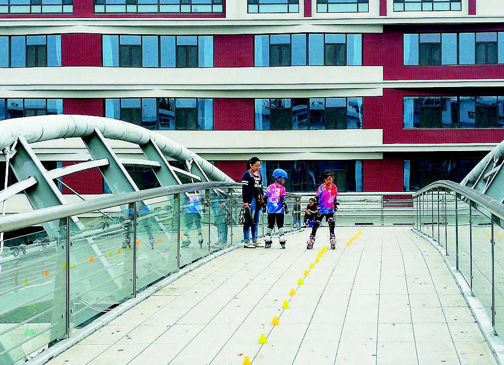 8月23日早7時許,在學府街山西大學北門附近的天橋上,一群孩子在練習輪滑,既危險又影響行人正常通行。