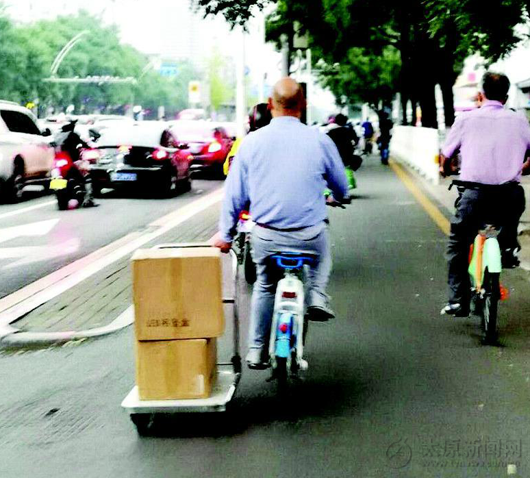 拍攝經(jīng)過(guò):8月24日上午,我途經(jīng)平陽(yáng)路學(xué)府街口往北200多米處路東非機(jī)動(dòng)車(chē)道時(shí),看到一名男子單手握把騎著共享單車(chē),另一只手則拉著一輛載著貨物的手推車(chē)。這種騎行方式易給自己和他人帶來(lái)危險(xiǎn),實(shí)在不可取。