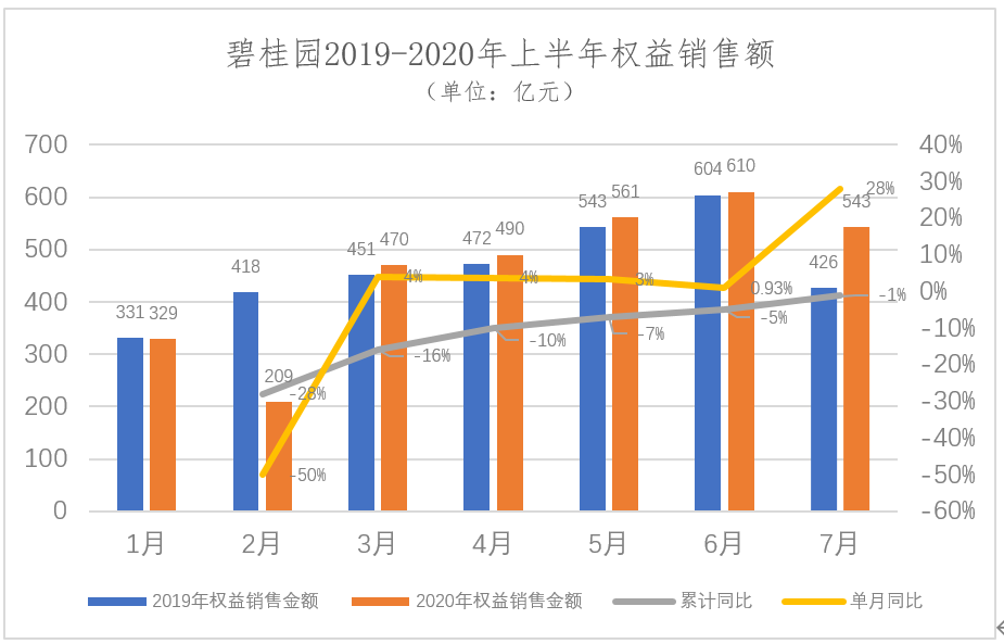 從集團單月權(quán)益銷售數(shù)據(jù)來看,除前兩月同比下跌外,三月之后各月均實現(xiàn)了同比正增長,且呈逐月攀高的積極走勢。7月份,集團權(quán)益合約銷售金額542.8億元強勁增長27.52%,錄得今年以來最高同比漲幅。2020年1-7月累計實現(xiàn)權(quán)益銷售金額達(dá)3212.3億元,穩(wěn)居行業(yè)前列。